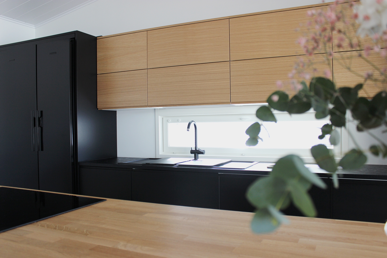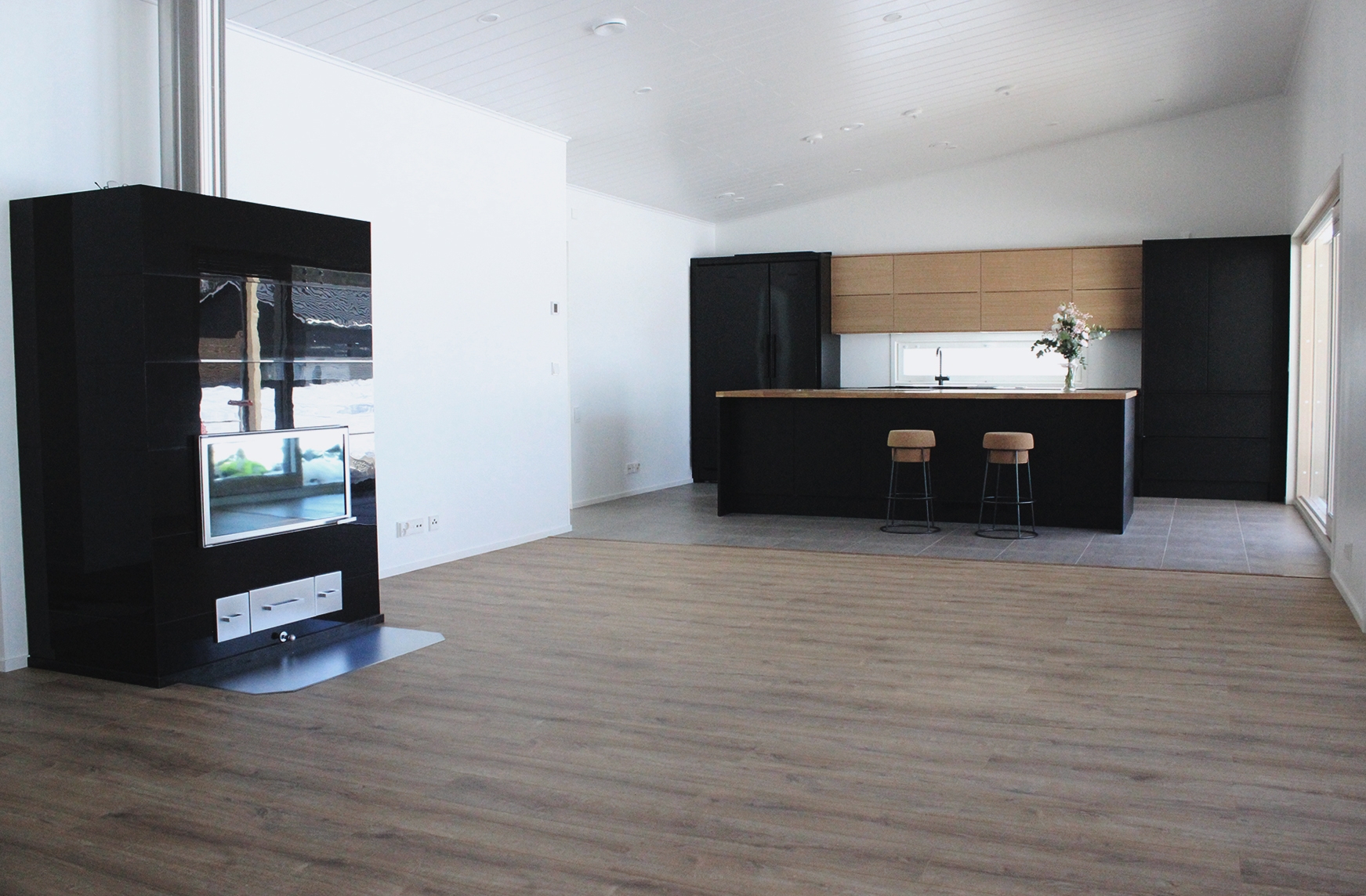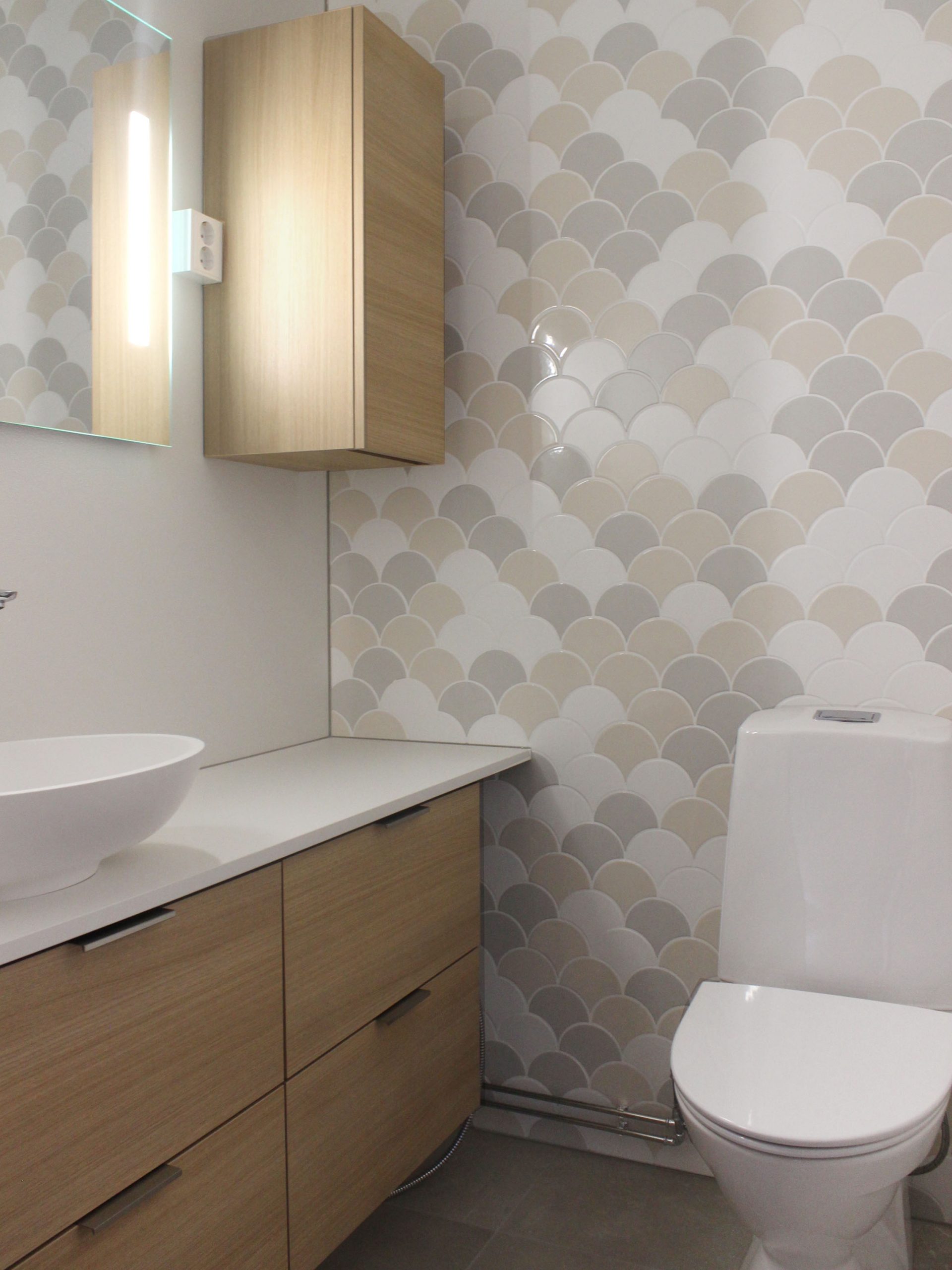 Omakotitalon kokonaisvaltainen remontin suunnittelu; kiintokalustesuunnittelu, pintamateriaalisuunnittelu, vessan uniikin laatoituksen suunnittelu