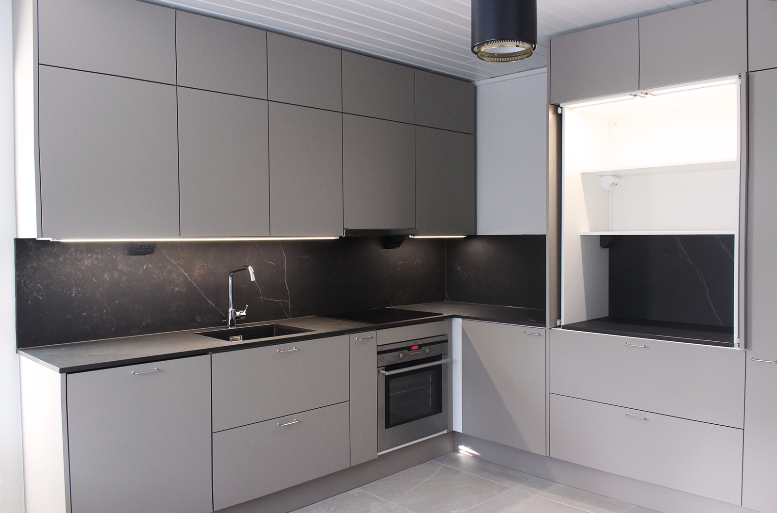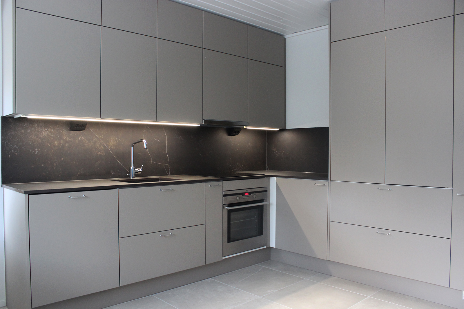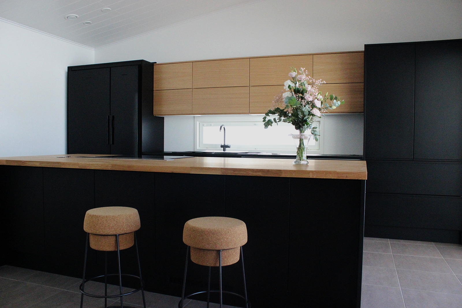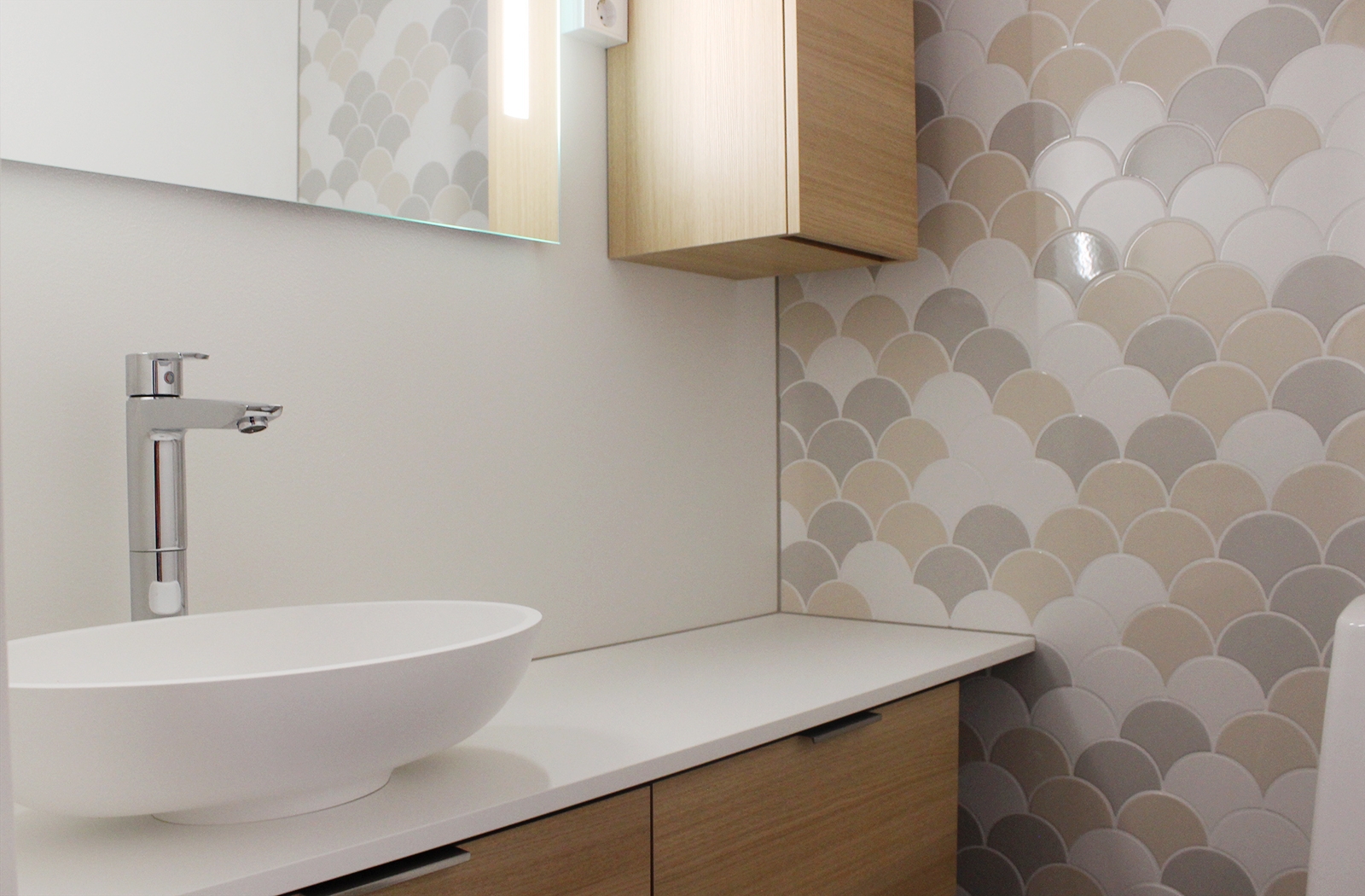 Omakotitalon kokonaisvaltainen remontin suunnittelu; kiintokalustesuunnittelu, pintamateriaalisuunnittelu, vessan uniikin laatoituksen suunnittelu