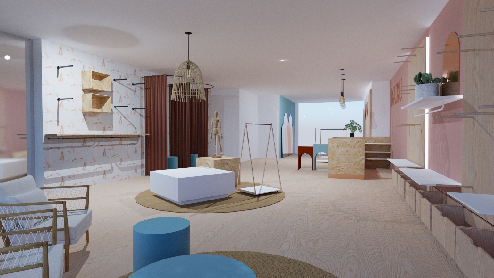 Naistenvaateliikkeen sisustussuunnittelu; Pintamateriaalisuunnittelu, kiintokalustesuunnittelu, layoutsuunnittelu ja valaistussuunnittelu