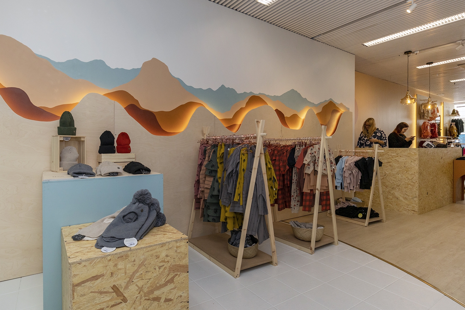Lastenvaateliike Kaiku Kidsin suunnittelu; pintamateriaalisuunnittelu, myymäläkalustesuunnittelu, layoutsuunnittelu