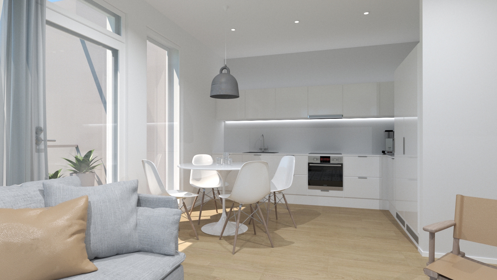 Kivitalon ennakkomarkkinointikuvat; 3D-visualisointikuvat asunnon myynti-ilmoitusta varten